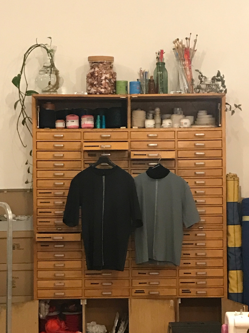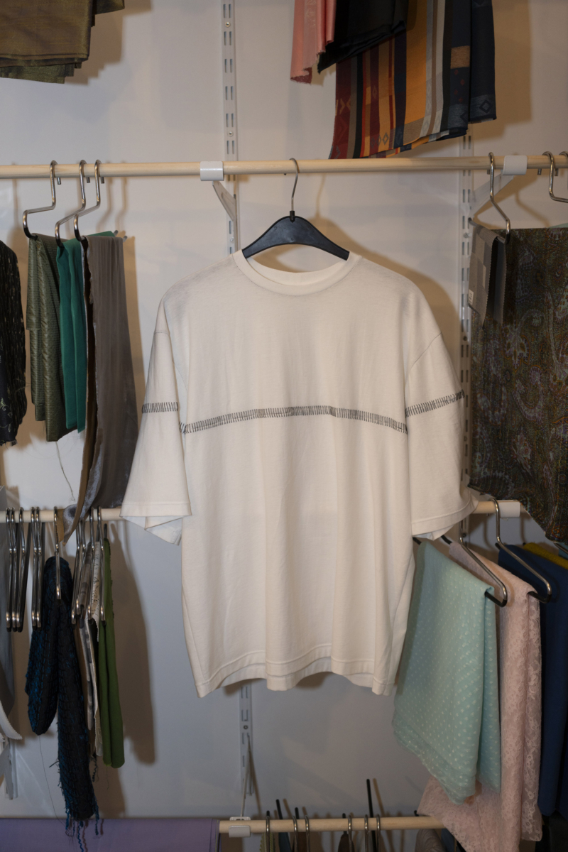 For this occasion, artist Thomas Julier collaborated with fashion designer Adriana Quaiser to design and manufacture a limited edition of T-shirts using deadstock fabric – unsold fabric produced for a particular purpose but never utilized – sourced from various places. The design placed particular emphasis on the shape, cut, and the seams of the T-shirts, denoting the space where different textiles meet and engage in dialogue through material qualities, textures, and colors. The T-shirts are conceived as wearables and soft sculptures alike.