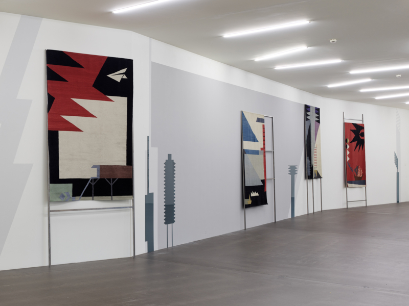 Patricia Bucher is interested in the layered interpretation of signs, symbols, and pictorial forms. Unfolding like a piece of postmodern architecture, her drawings, watercolours, sculptures, and kilims (woven carpets), create non-hierarchical worlds and situations, delineating conventional ideas of subject and object. Each work playfully questions the notions which made the human-led subject the only relevant perspective. In the background of Bucher’s practice is rigorous research into semiotics and the relationship between perception, reality, rationality and understanding. We approach the world with concepts and everything we see is filtered through that lens. However, something can happen that makes us shift our lens and suddenly, we are looking at the same object, with a different perspective. The signs and symbols of everyday life, for example traffic signs, have given us the rules of the road, the rules through which we perceive our reality. Yet, those perceptions can shift so quickly and ambiguously, and it is in that moment that Bucher catches us. Her intricate works carefully denote that moment when perception can shift, usually unobserved, leaping across demarcations into a world where we see more with our minds than our eyes.