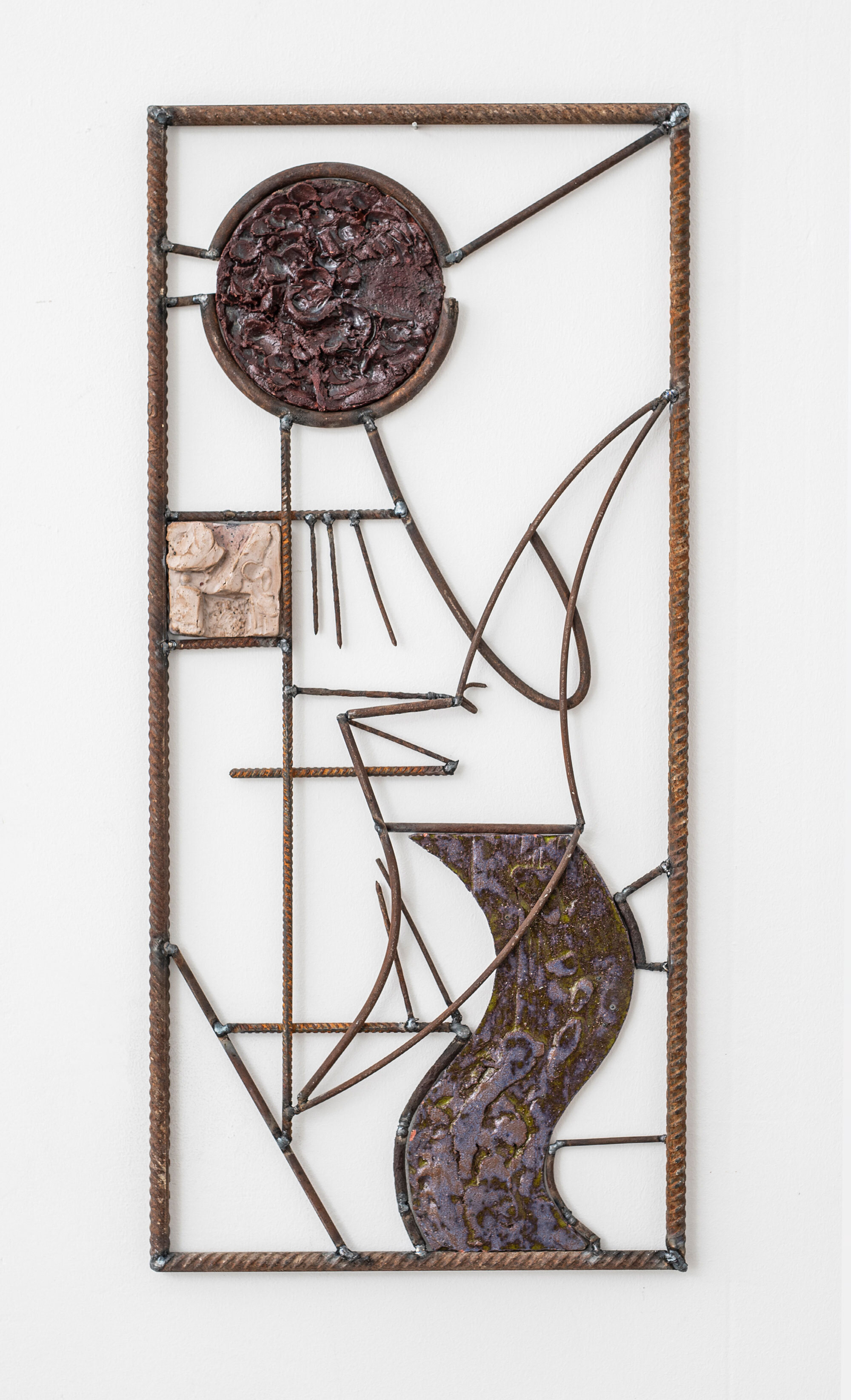 Iron, wood, glazed ceramic, beewax / 39 x 28 x 2 cm / 15.4 x 11.0 x 0.8 in